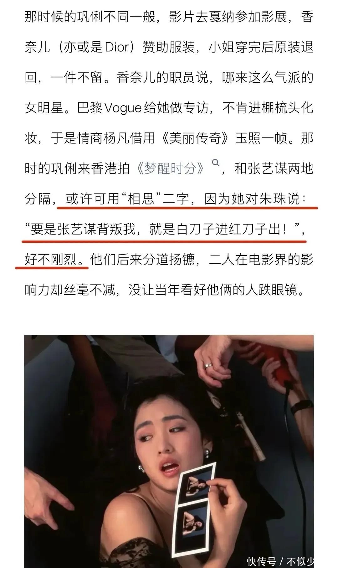 现实中的巩俐同样个性鲜明,难以妥协。据香港导演杨凡回忆,当年两人异地相守时,她曾立下誓言:若有一日背叛,必是白刀进红刀出。