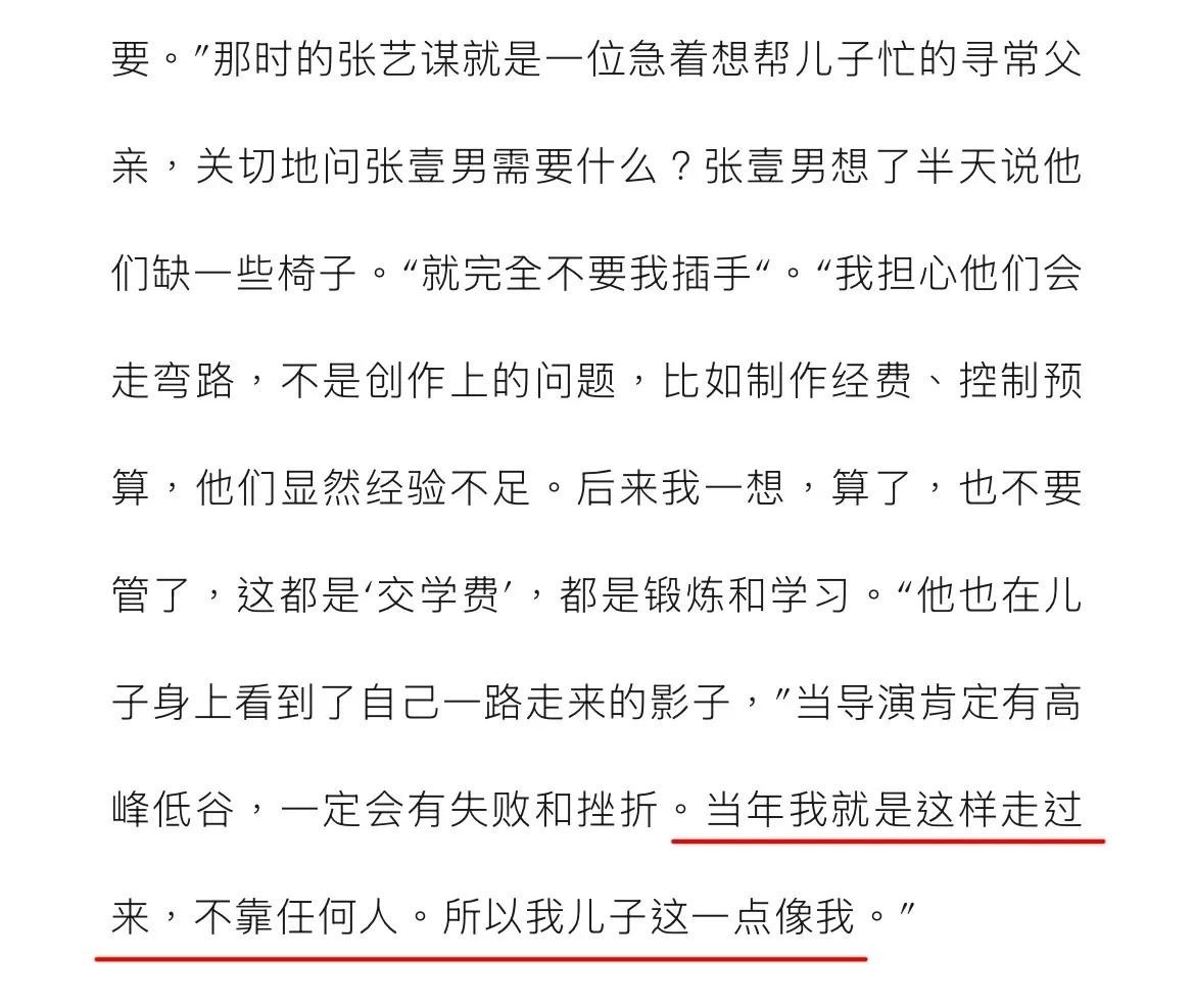 在儿子身上,张艺谋仿佛看见年轻时的自己——那股不服输、不靠人的狠劲如出一辙。
